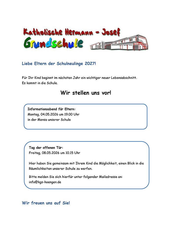 Neues an der Katholischen Hermann-Josef Grundschule Alsdorf-Hoengen